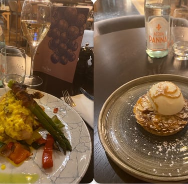 What does one do when you have an early flight and are worried about dragging your behind out of bed early enough? Why book an hotel the night before out by the airport where a three minute shuttle bus ride means you don’t have to drag yourself out of bed as early. Probably don’t take this advice, and probably don’t fill up on a two course meal, wine included when you are looking at 3am start the following morning.